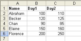 Cells(SalesPerson, Day)=SalesVolume(SalesPerson,Day)